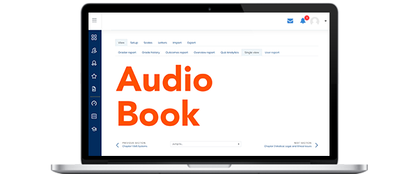 Audio Book access allows learners to absorb course content from the gym or during their daily commute and helps cater to a broad range of learning styles.