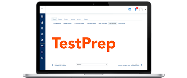 With TestPrep students can build custom practice tests that closely mimic the content and format of an actual exam. Students can choose the subject area they want to focus on, how many questions will be on the test, and see immediate feedback on the answers. For instructors, TestPrep provides real-time reporting on how students are performing and where they may need additional help before they take an exam.